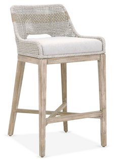 Transitional style counter stool featuring intricate rope weave design and solid mahogany legs. These white counter stool are rigid, durable, and can be used at restaurants and hotels. Accent stitching on the backrest emphasizes the tapered look of this design. Cline counter stool pottery barn. Arras counter stool taupe white one kings.